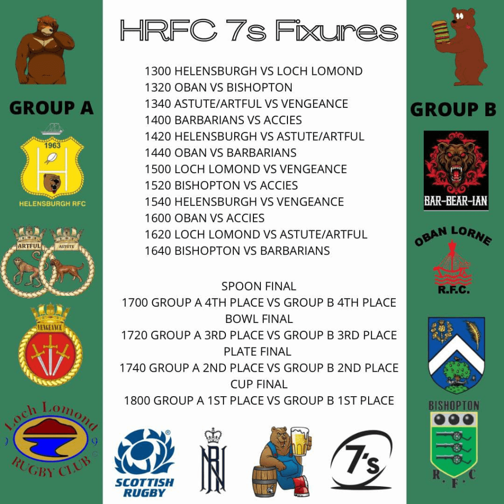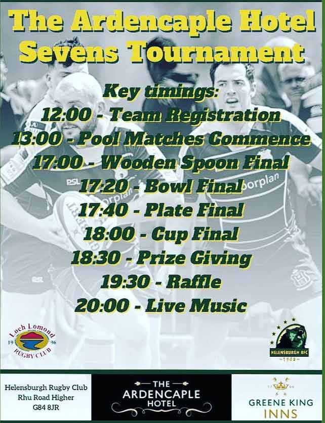 Helensburgh Rugby Club and Loch Lomond RFC hosted the Ardencaple Hotel Sevens Festival with eight teams from across the west of Scotland and the Royal Navy.